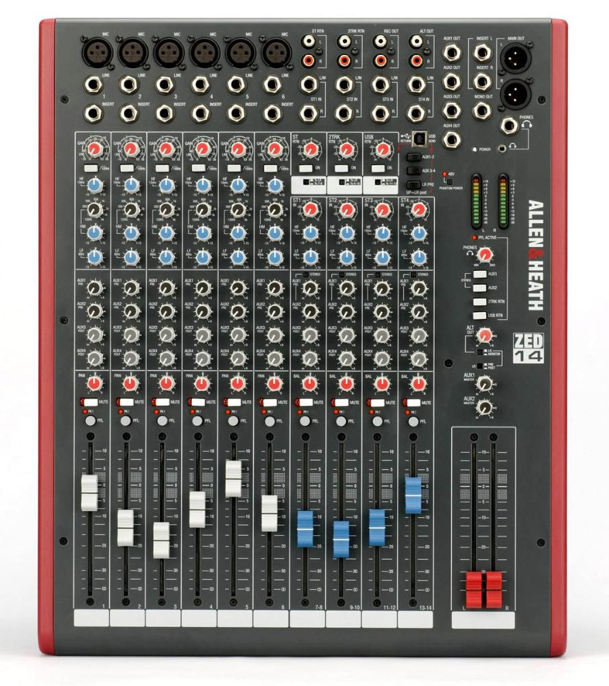 Allen & Heath ZED14 6 Mono/4 Stereo Input Mixer With USB