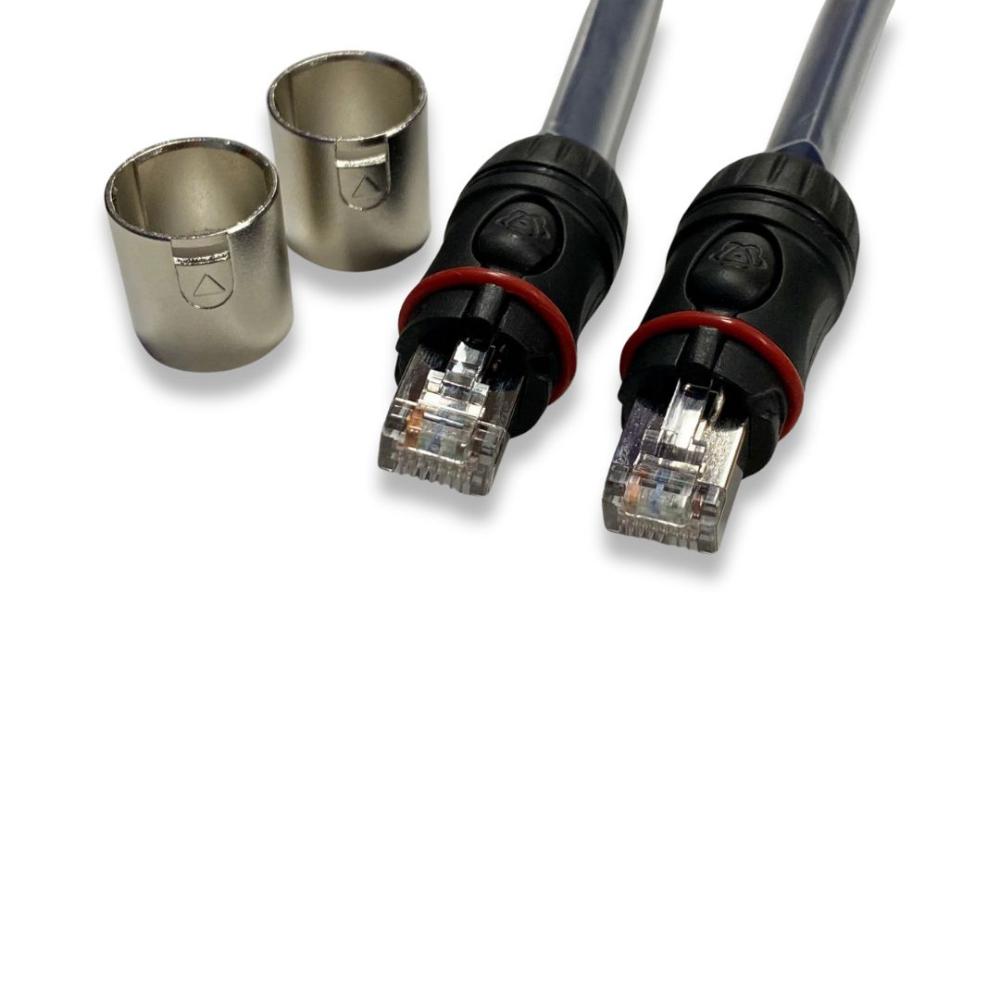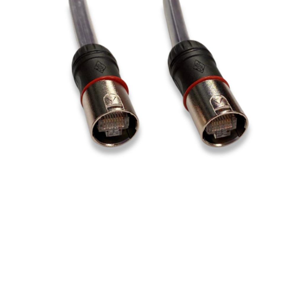 Professional Cat5e shielded heavy duty digital network cable with removeable EtherCon connectors. Includes 'hook and loop' cable tie for tidy cable management and loose heat shrink for custom labelling.