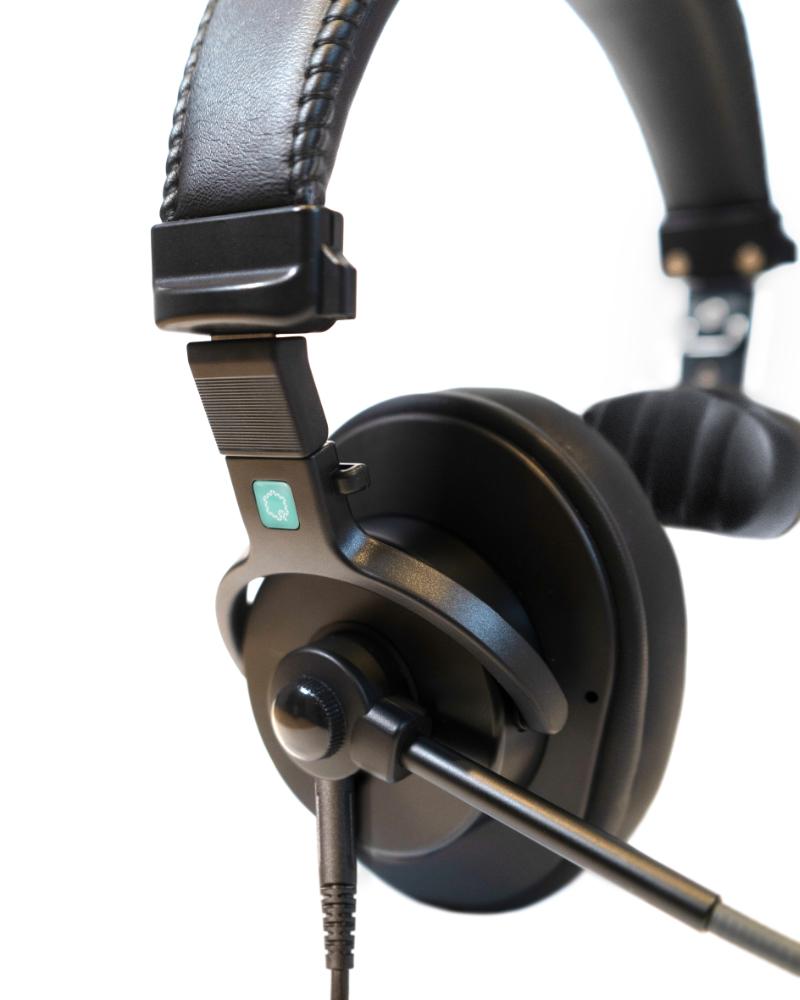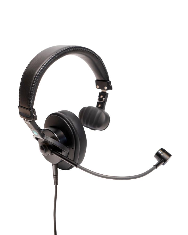 Light weight single-ear intercom headset with dynamic microphone, XLR-4F connector and 1 meter cable. Ideal for use with PunQtum beltpacks and speaker stations.
