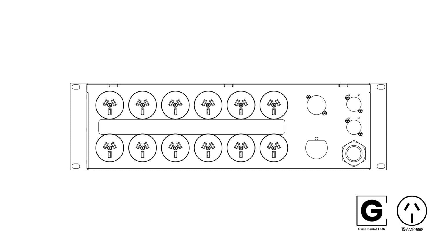 ONEstage PD1210-G Rackmountable 3RU Distro W 12 X 10A RCBO 12 X 10A GPO