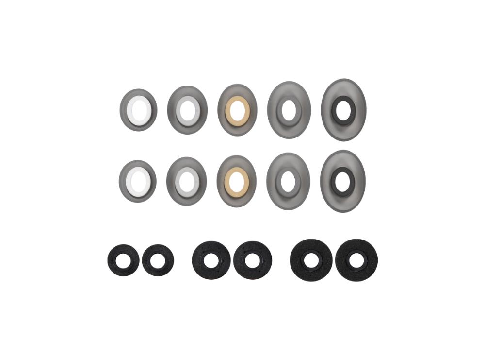Contents: one pair of in-ear headphones, 1.4m cable with MMCX connector and 3.5mm 3-pin plug, Jack adapter (3.5mm to 6.35mm), Five pairs of silicone tips (XS, S, M, L, XL), Three pairs of memory foam eartips (Comply TX-500), One pair of wax filters, quick start guide and carrying case.