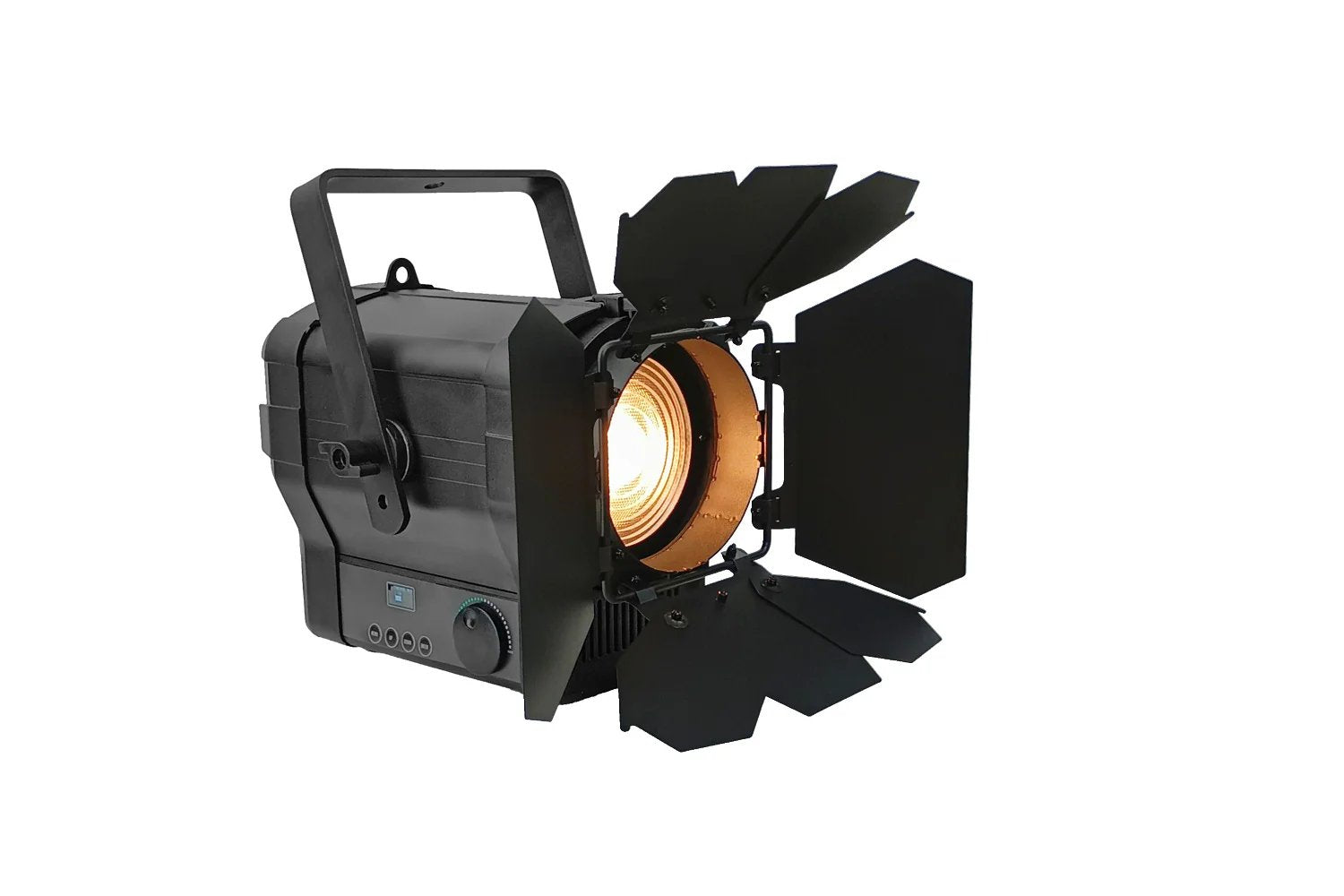 Event Lighting Opera Compact Series Fresnel with 100W COB Variable White LED Engine, 3200-5600K, 14-55° Manual Zoom, True1 in/out, 5 pin DMX in/out, includes gel frame & 8 leaf barn door