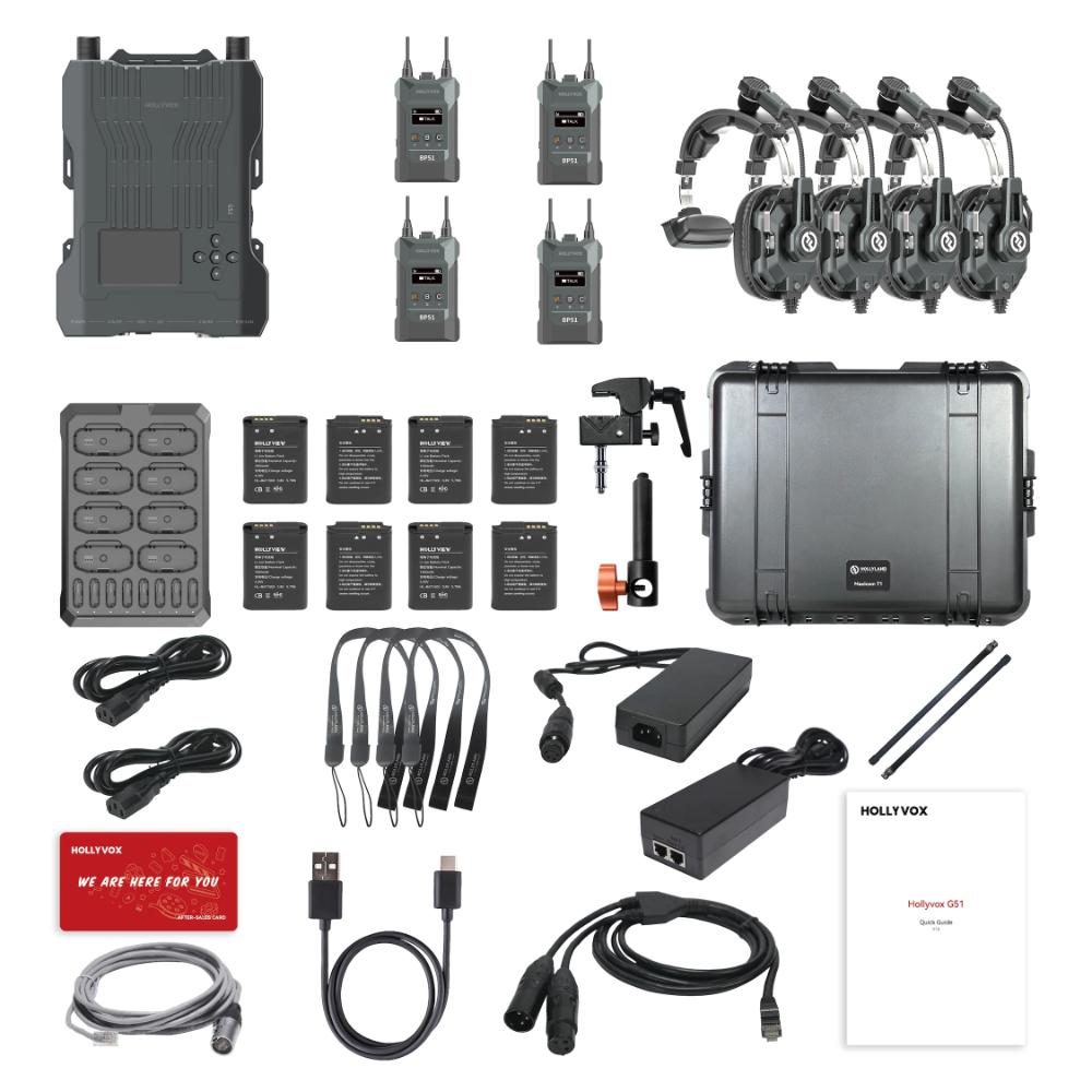 Introducing Hollyvox G51, the ultimate full-duplex wireless intercom system recognized for its unparalleled professional performance. With advanced dual-mic Environmental Noise Cancellation (ENC) technology, this professional full-duplex wireless intercom system ensures unparalleled communication clarity, ideal for production teams working in loud environments. The ergonomic headset design offers optimal stability and comfort, allowing you to stay focused on your tasks. With an impressive LOS range of 1,300ft (400m), it is the ideal choice for small- and medium-scale events such as stage performances and sports events, enabling seamless team coordination through extensive and interference-free communication.