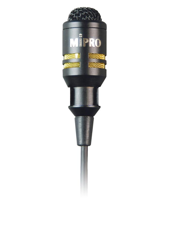 MIPRO MU53L Lapel Microphone for Bodypack Transmitters. Compact 10mm Cardioid Condenser Microphone with 1.5m cable terminated in 4-pin mini XLR to suit all MIPRO bodypacks. Black.