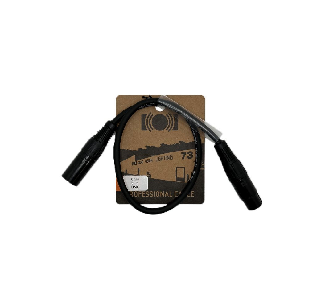 Professional DMX double shielded cable with black 5 Pin XLR connectors. Includes 'hook and loop' cable tie for tidy cable management and loose heat shrink for custom labelling. Manufactured with 3 core DMX cable. Contact us for 5 core options.
