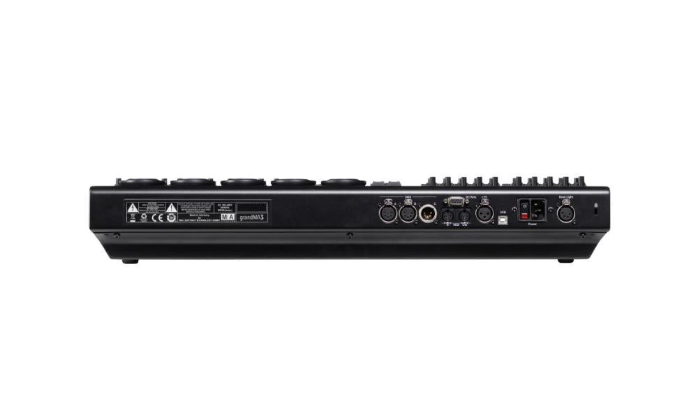 You have three DMX ports available, and you can use Ethernet protocols to send DMX data. On the rear panel you find all inputs and outputs of a grandMA3 console. MIDI, timecode and remote control are directly available. So you get the real console feeling!