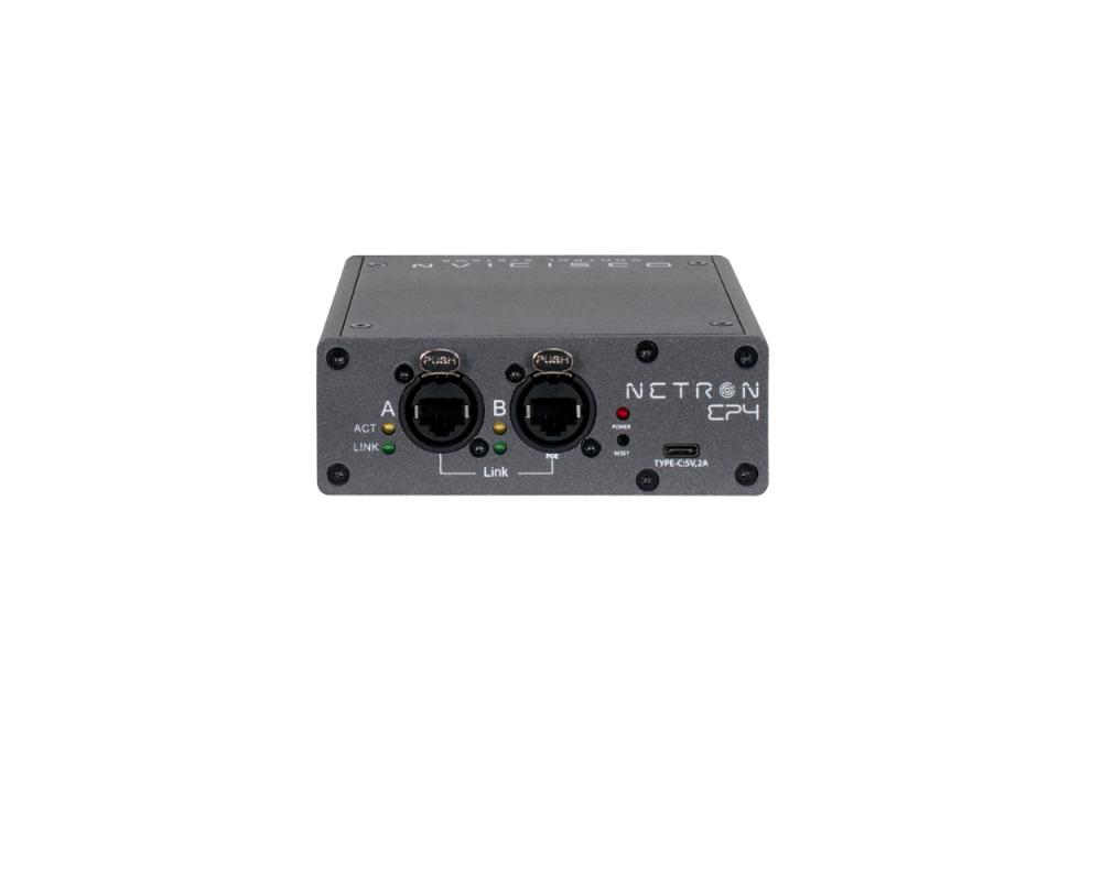 The Netron EP4 is a compact Ethernet to DMX gateway with four RDM compatible ports. It is configurable via its internal web remote and powered over Ethernet or via the USB-C connection.