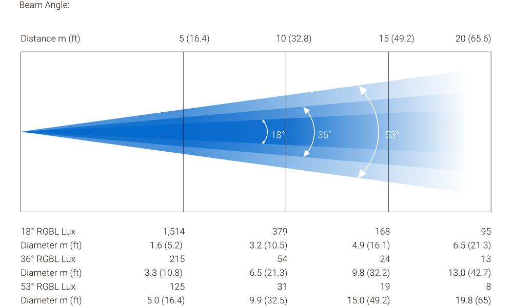 - Beam Angle : 18°, 36°, 53°