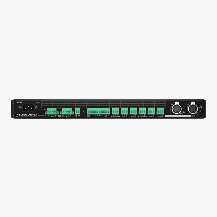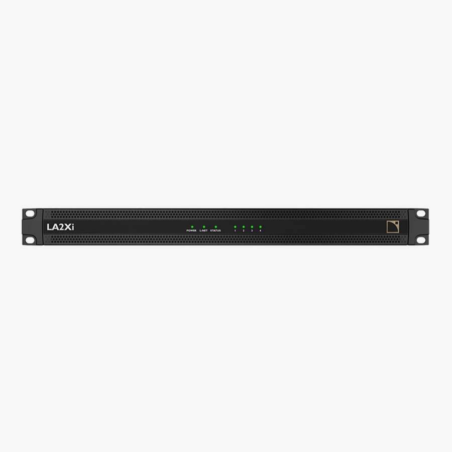 LA2Xi is a four-channel amplified controller dedicated to permanent installations. Designed to match the power of small-format loudspeakers, LA2Xi can also be used to support larger loudspeakers at lower SPL capability (4 x 4 single-ended mode) or at full SPL capability (4 x 3, 4 x 2 or 4 x 1 bridge mode).