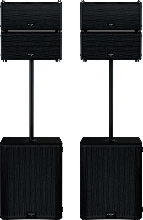 QSC L-Class Powered Line Array Ground Stack Pole Mount System w/ 2 x LA108 and 1 x LS118 per side