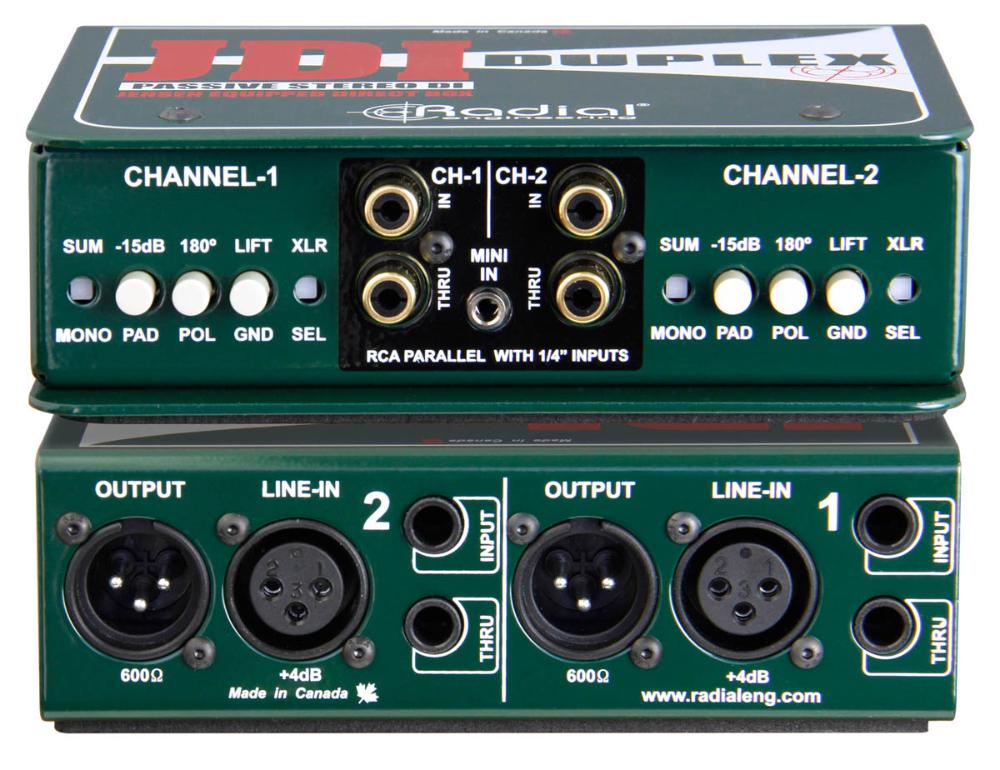 The Radial JDI Duplex is a full-feature, stereo passive direct box designed to enhance connectivity, reduce noise, and simplify the hectic life of the touring professional, broadcast engineer or AV integrator. It is plug-and-play easy to use while delivering the utmost sonic quality.