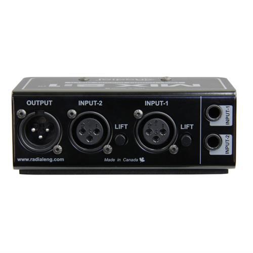 The MIX 2:1 makes it easy to sum together any two signals, whether it's two microphones on a single guitar amplifier, or the stereo line outputs of a mixing console. At the inputs of the MIX 2:1, both ¼" TRS and XLR connectors are available, with ground lift switches to eliminate buzz and hum from ground loops and ensure noise-free operation. A trim control is also featured on each input, so if you are connecting two separate mono sources such as the outputs of two mic preamps, they can each be attenuated as needed to match their levels at the output. After both signals are passively summed together, they feed a single XLR output that can be connected to a powered speaker, or the input of a console or recording interface.