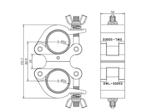 The ShowPro Double Coupler with 360 degree rotation and 500kg weight capacity is a must-have for any professional rigging setup. This coupler provides secure and versatile connection points, allowing for maximum flexibility in positioning and load distribution.