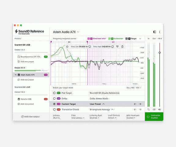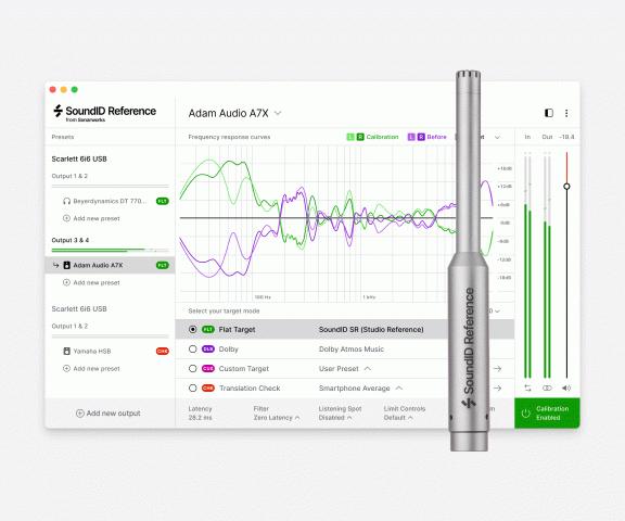 In less than 20 minutes you can calibrate your existing studio speakers with a SoundID Reference measurement microphone and calibrate your existing headphones with more than 280 headphone calibration profiles already included in the software as ready-to-use presets. With an applied calibration profile the software sets the frequency response target to be completely flat across all audible frequencies so you can make music that sounds great everywhere. You can also now make custom adjustments to the target curve in real time with the new custom target feature.