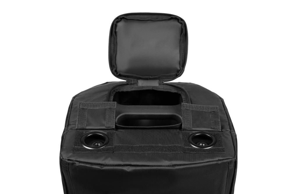 - Roll-Up, Hook-and-Loop Cover Flap Exposes Mesh Speaker Grille & Zippers Down When Not in Use