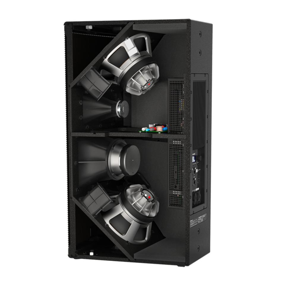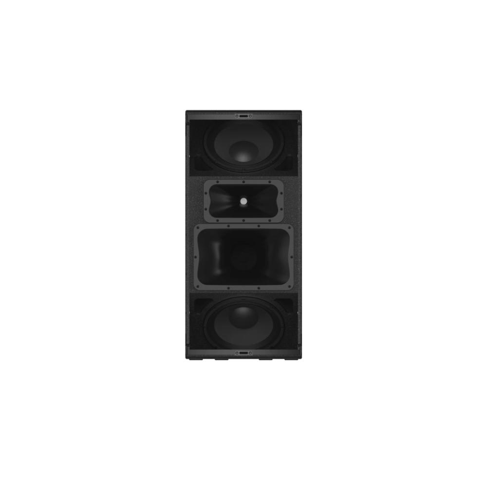 The JBL SRX922 is a compact, acoustically three-way, dual 12-inch powered point-source loudspeaker engineered for applications requiring high output and precise directivity control from a trapezoidal full-range enclosure. It is an ideal choice for high-output mains systems, side-fills, or as a high-performance point-source element within larger SRX900 deployments.