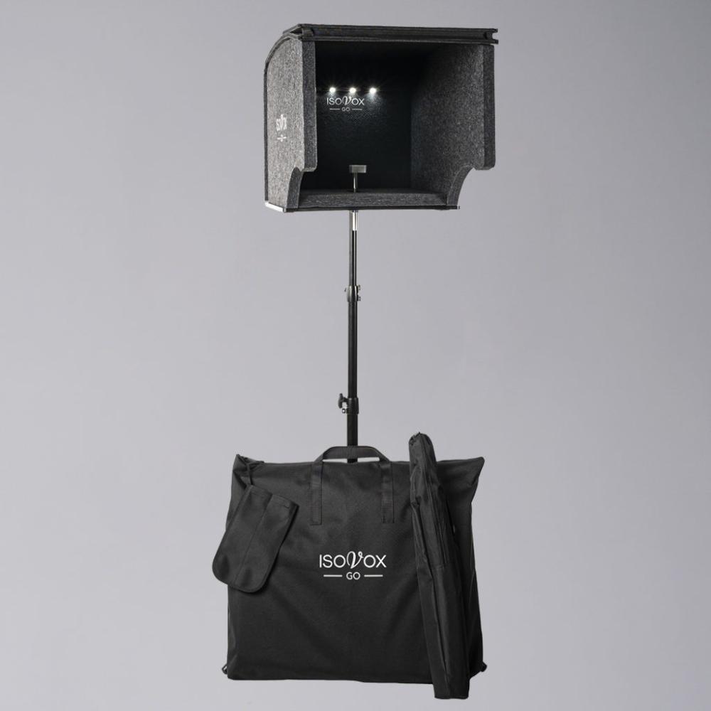 ISOVOX Go is a Studio Vocal Booth that fits in a carry bag.