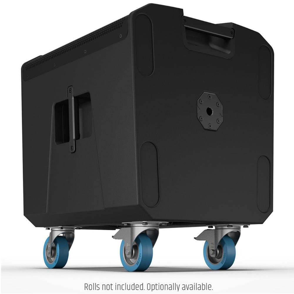 The rugged housings made of 18 mm laminated wood can be stacked, while the M20 thread on top lets you mount the main speakers using a distance pole. Transport is simplified by mounting rollers to the rear. Corner protectors guard the edges during setup. To keep the ICOA SUB from slipping out of your hands, its four aluminium grips are covered in rubber.