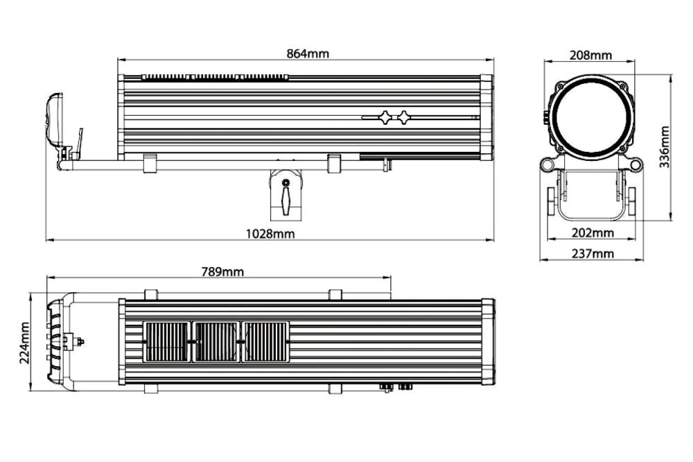 - Size (Followspot): 1028 x 224 x 336mm