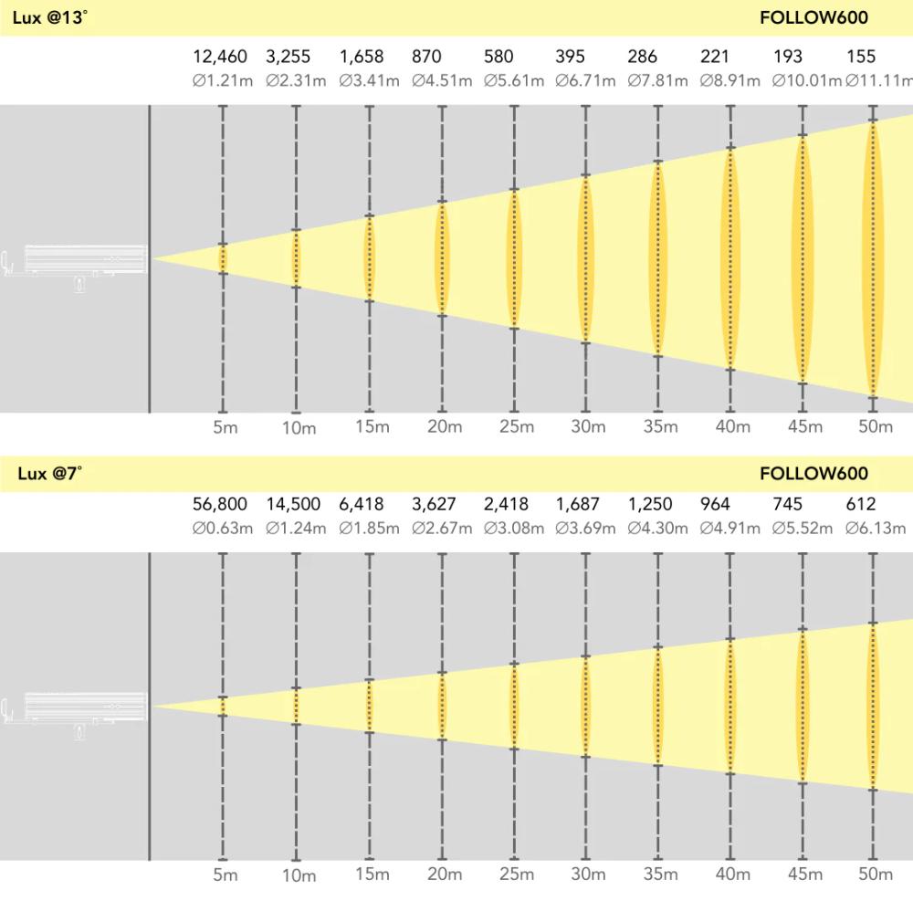 - Output: 56,800 lux @ 5m @ 7°; 12,460 lux @5m @ 13°