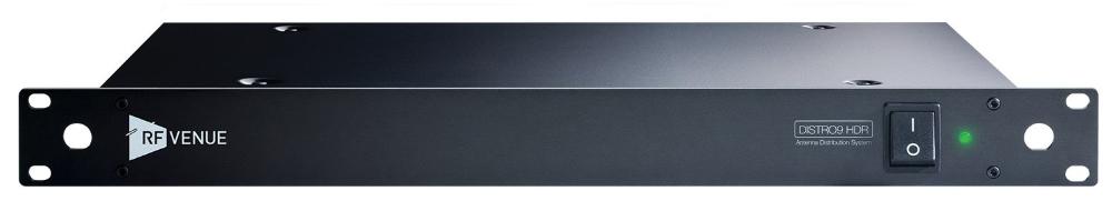 Introducing the RF Venue DISTRO9 HDR, which represents a unique approach to high-quality RF signal distribution for wireless microphones. A new and proprietary design eliminates the old internal splitters most antenna distribution systems still use and replaces them with state of the art “divide by three” circuitry, providing up to nine low-noise channels of diversity wireless. Each output is clean: DISTRO9 HDR employs low-noise figure amplifiers and superior gain structure, providing over 60 dB of dynamic range across the spectrum. Any DISTRO9 HDR RF output can be cascaded to a second DISTRO9 HDR, eliminating the need for dedicated cascade ports and providing up to 17 wireless microphone channels in just two units of rack space.