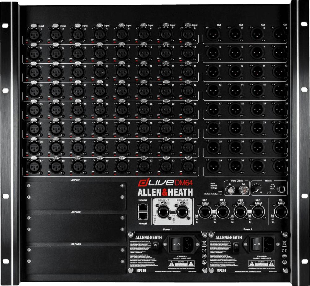Allen & Heath DLIVE-DM64 Mixrack 128 X 64 I/O, 64/32 XLR, 1 X PSU, ME-1 Port, 3 X I/O Ports