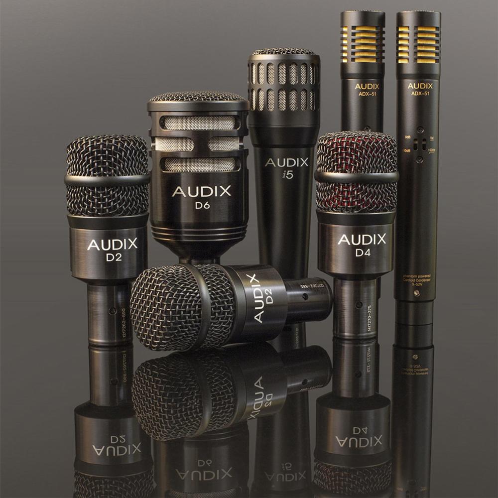 Included in the DP7 drum microphone package is the D6, Audix’s flagship kick drum microphone, two – D2 dynamic drum microphones for rack toms, one D4 for floor tom, the i5 for snare, and a pair of ADX51 studio condenser microphones for overhead micing. Also included are four D-Vice rim mount clips for the snare and tom microphones, and three heavy-duty tension fit microphone clips for the other three microphones. Everything is conveniently packaged in a foam-lined aluminum road case for safekeeping when the microphones are not in use.
