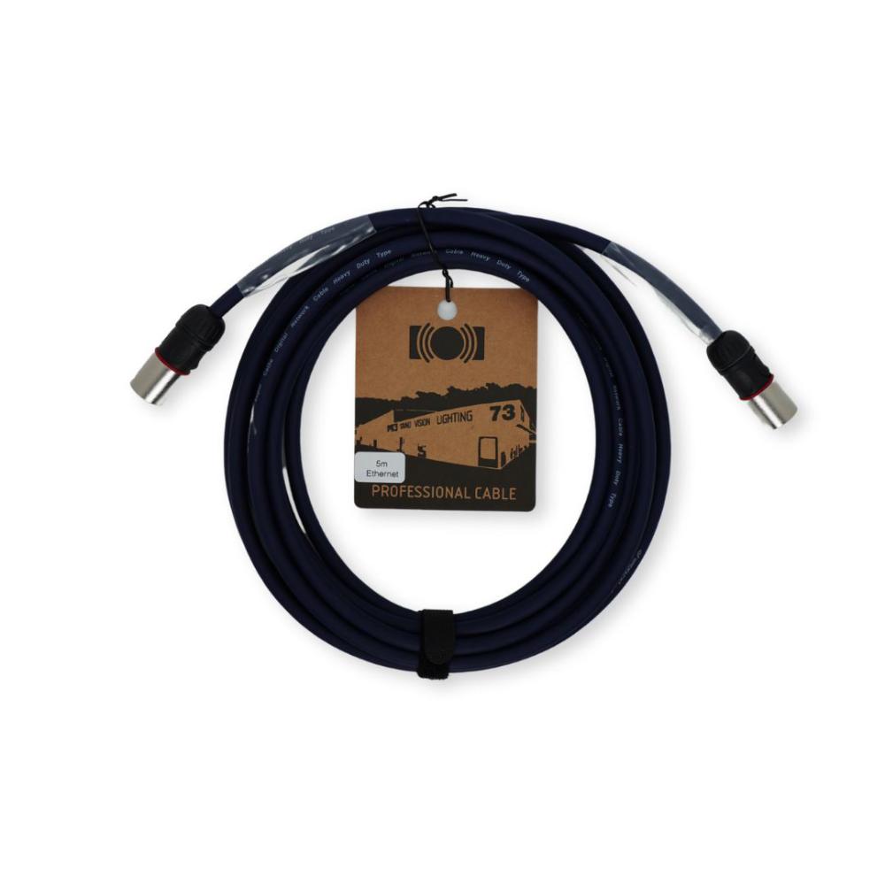 Professional Cat5e shielded heavy duty digital network cable with removeable EtherCon connectors. Includes 'hook and loop' cable tie for tidy cable management and loose heat shrink for custom labelling.