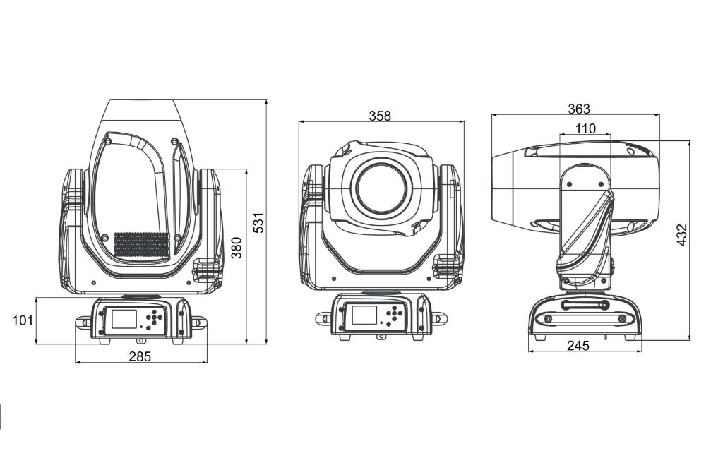 With flexible operational modes including DMX, auto, and sound active, navigation is intuitive via the 2.4" colour LCD control panel with battery backup. Upgradeable via DMX, the HAVOCH200 ensures your lighting capabilities stay cutting-edge. Crafted with durability in mind, the matte black ABS and steel housing contains a sensor-controlled fan, ensuring efficient cooling in a robust and reliable form-factor.
