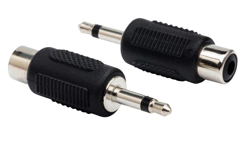 These adapters are designed to adapt phono plugs to mini mono phone jacks.