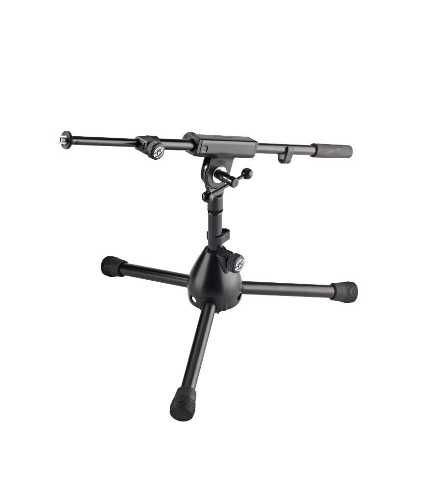 Extra low design for bass drums or special use. Very short and heavy legs provide maximum stability. Legs are foldable for easy transport. Comes with two-piece boom arm.
