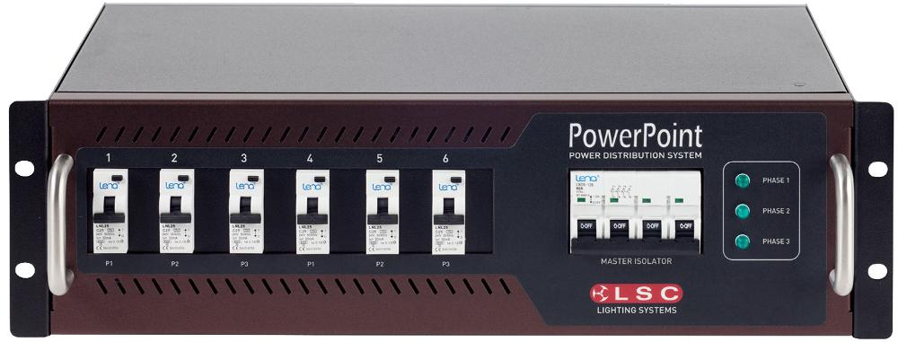 LSC’s PowerPoint is a simple-to-use 3-phase to single-phase power distribution unit. Input protection is by a 4-pole mains input isolator with neutral disconnect and each output circuit is protected with an RCBO (RCD + MCB), maximising safety and performance, whilst delivering reliability at an affordable price.