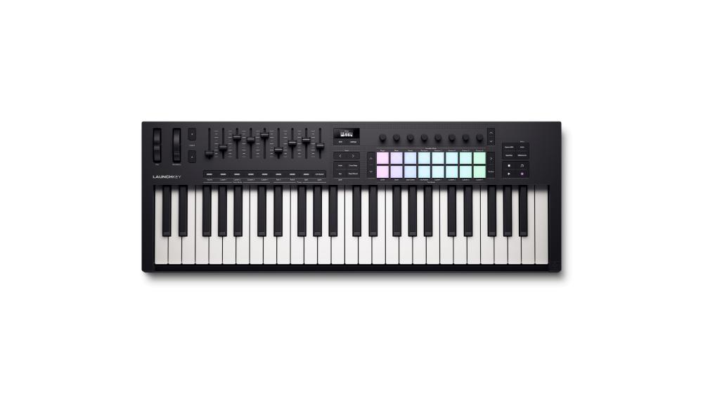 Find inspiration with Launchkey 49 – a powerful, all-in-one DAW controller with four octaves of semi-weighted keys and 16 patented FSR pads for finger drumming, clip launching, and more. You also get a bank of nine faders and eight endless rotary encoders for mixing, controlling plugins, and performing with built-in creative tools.