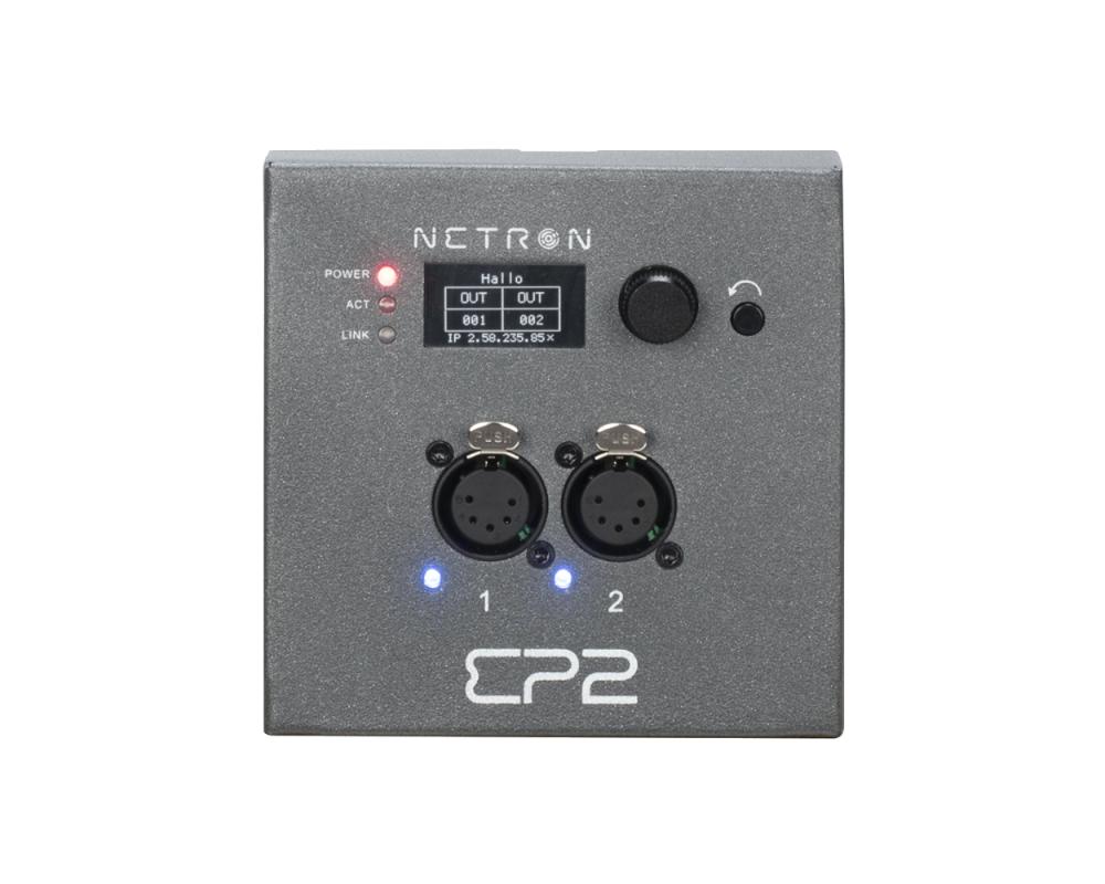 The Netron EP2 is a compact Ethernet to DMX gateway with two RDM compatible ports designed for wall mount, truss mount and standalone installations.