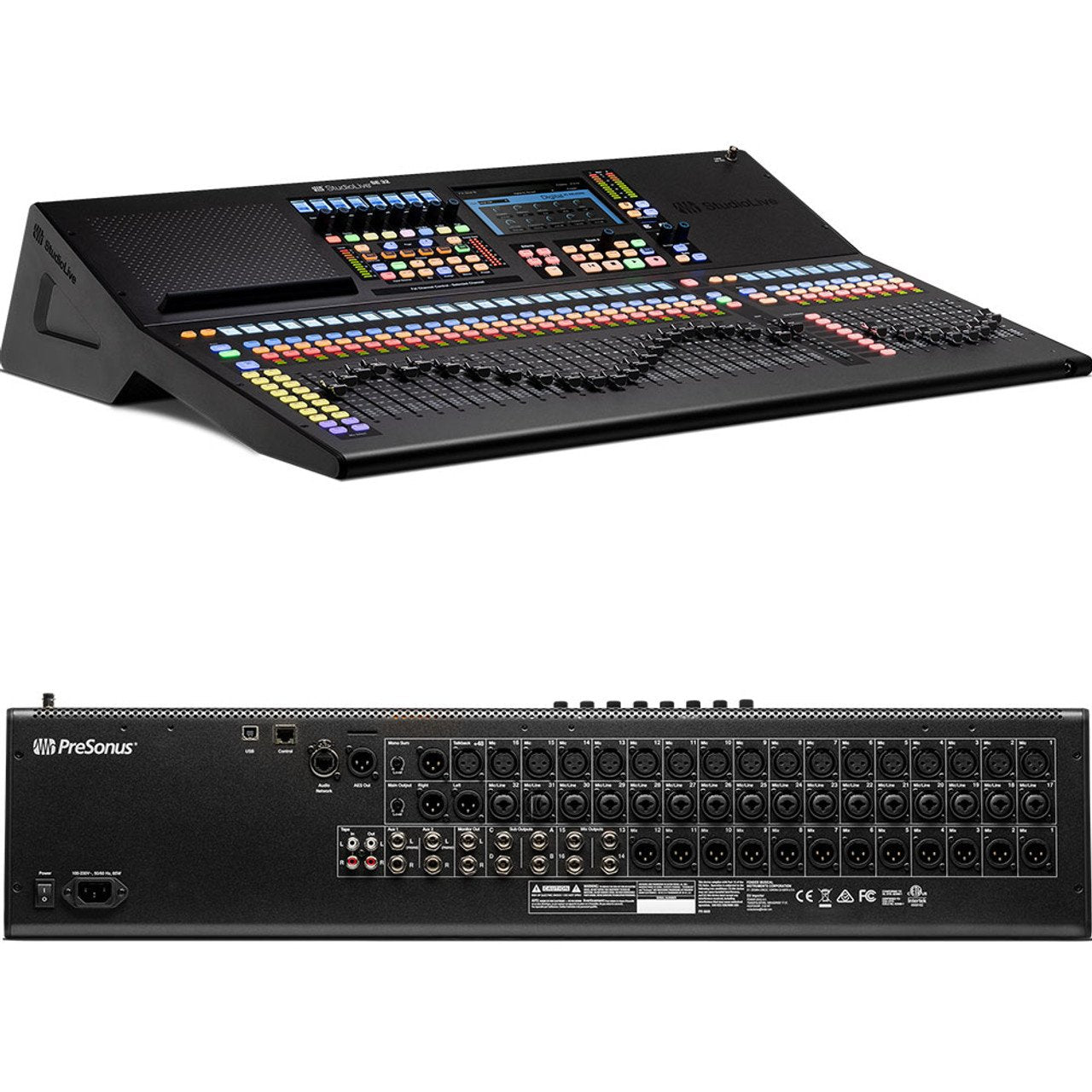 You also get vintage-inspired EQ and compression models options on every channel and mix; 16 FlexMixes individually configurable as Aux, Subgroup, or Matrix mixes; 4 dedicated subgroups; 4 FX Mixes with dedicated stereo returns and processors; 24 DCA groups; 33 touch-sensitive, motorized faders; onboard 34x34 multitrack SD Card recording; a 64x64 USB audio interface; and a comprehensive software package that includes tightly integrated Capture multi-tracking software featuring true virtual soundcheck; Universal Control remote mixing software with Offline Editor and PreSonus Metro for remote Internet control with real-time audio monitoring; and a perpetual Studio One Pro license.