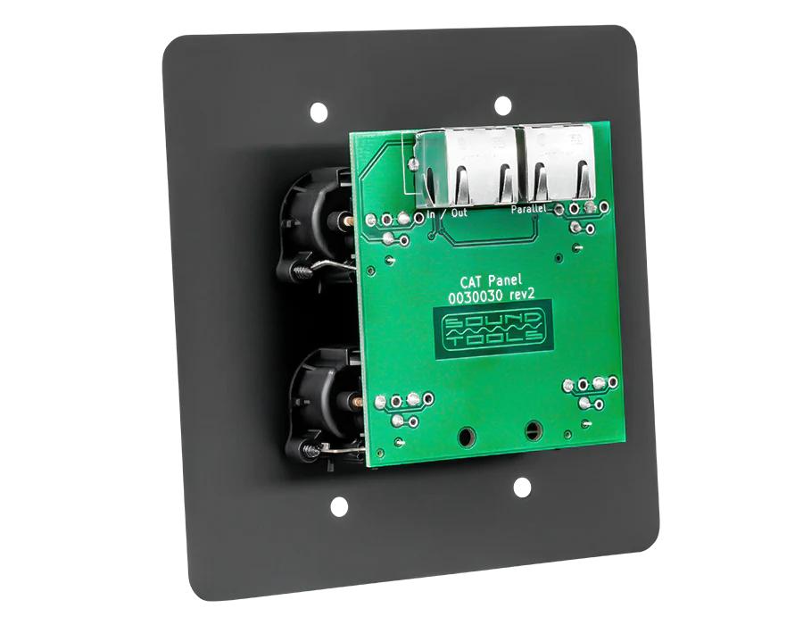 Send audio and data from one room to another using installed shielded Cat5 cable and SoundTools Wall CATs. These durable aluminum wall units fit standard 4” electrical junction boxes to provide easy conversion to and from Cat5 cable to four channels of XLR, DMX or COM lines.